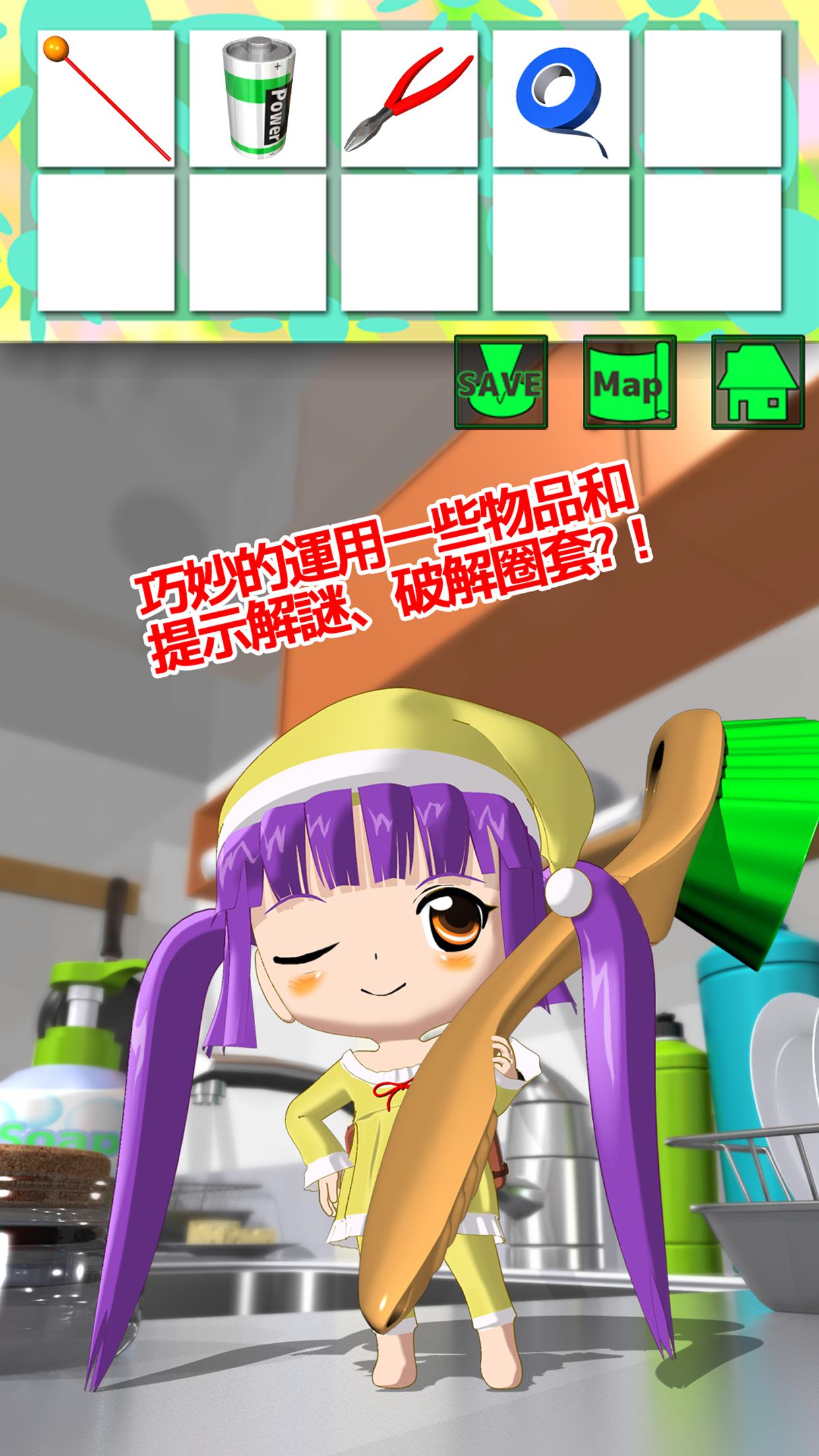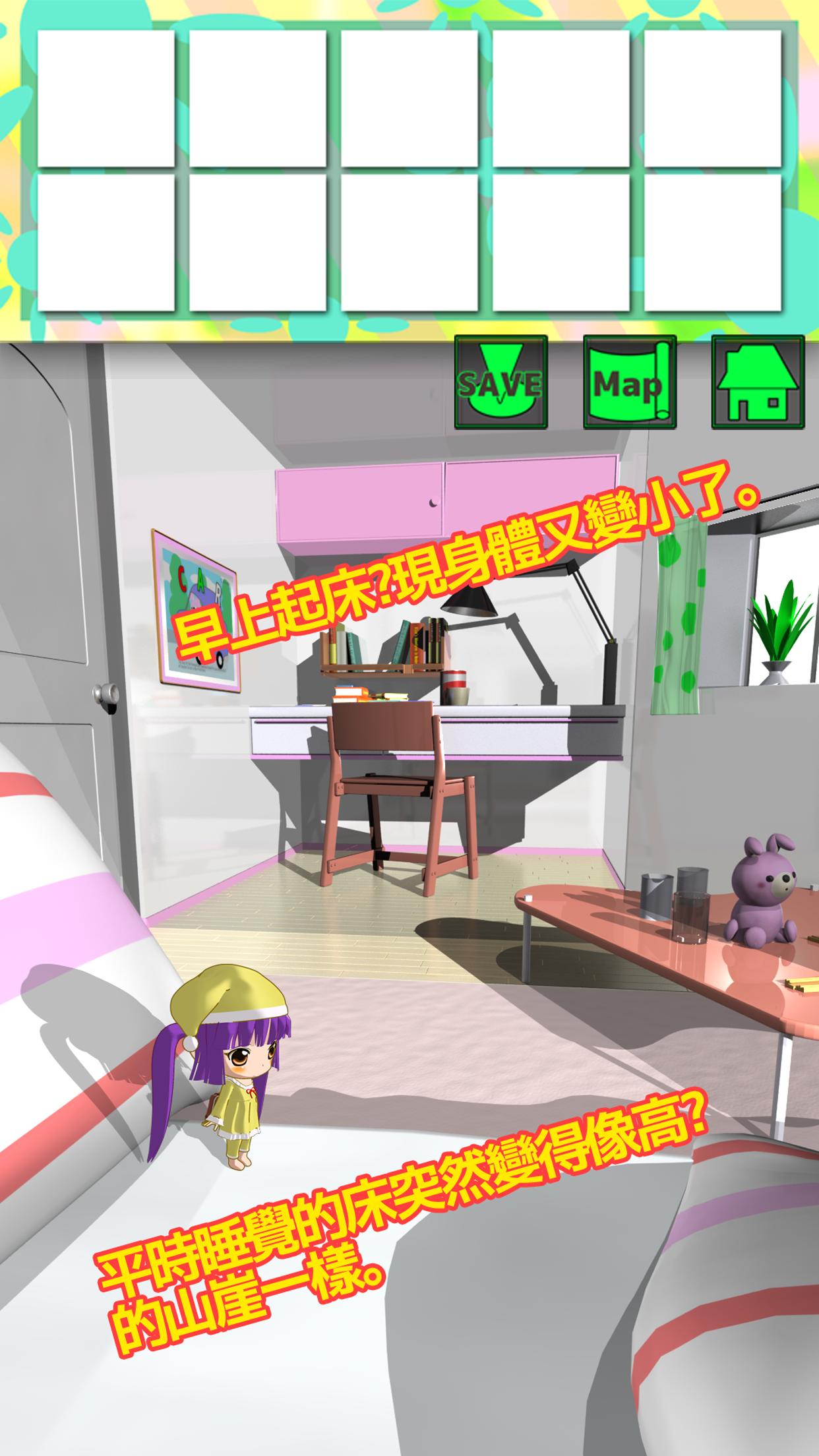 1、身体缩小的女生为了更好地要找到原本的身体而在房间内探索的逃离游戏。