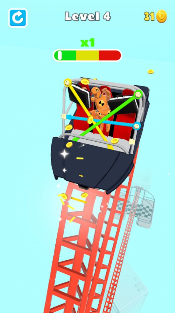 绑好安全带安卓版是一款有趣的休闲益智类游戏,这款游戏的玩法非常的有趣,在这款游戏中玩家们可以体验到非常有趣的游戏过程,玩家们需要使用安全带将乘坐过山车的人偶固定在座位上,这非常考验绑安全带的技巧,既不能伤害人偶又不能让人偶从过山车上跌落。