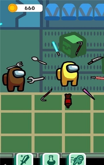 我贼6哒,以太空狼人杀为主题的飞刀游戏,玩家在游戏中选择自己的太空人进行战斗,你需要做的就是拾取关卡中的各种道具进行战斗,关卡中的一切,包括小刀,雨伞,叉子……都会成为自己的武器,围绕着你的四周旋转。
