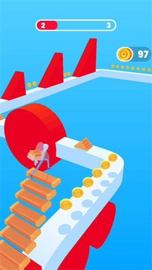 搭楼梯冲冲冲游戏是一款非常好玩的休闲冒险闯关游戏,游戏画面十分精致,玩家需要不断的利用自己手中的砖块进行搭建,玩法非常的有趣,可以慢慢解锁很多厉害的道具使用,操作简单,任何玩家都可以快速上手玩耍,非常适合玩家去打发无聊的时光。