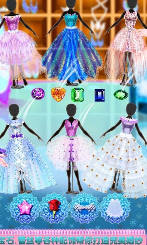 童硕婚纱设计师游戏中来看看在我们的设计指引下完成设计工作并且帮助女孩为婚礼化妆打扮,向我们展示你卓越的时尚技能吧。