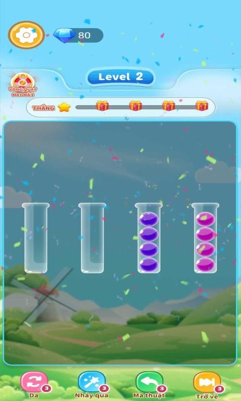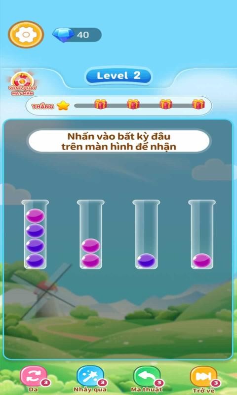 幸运球分类游戏是一款非常有趣的休闲益智类游戏游戏。游戏中玩家需要将随机放置的彩色的小球进行分类,相同颜色的小球放到同一根管内即可。点击小球,再点击管道,小球即可进入管道,玩家需要进行思考,如何用最少的次数,完成排序。