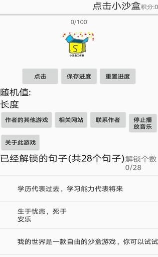 点击来增加进度,然后进度满100 会获得一句我写入的文本;
