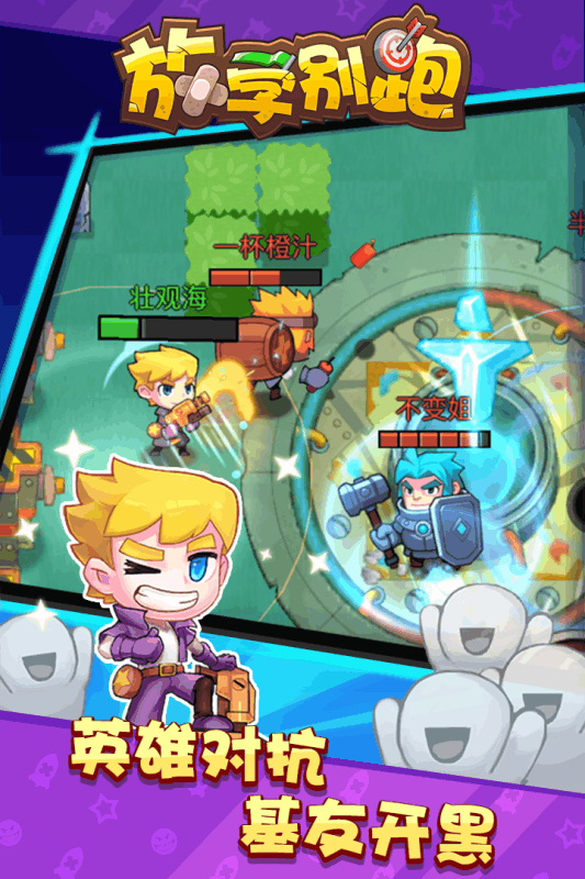 放学别跑公测啦~~公测啦!宇宙第一魔性恶搞手游来啦!你从没体验过的全新版本!不用靠孙子告诉你公测的消息!在2D的卡通世界操纵一群逗B英雄,利用风骚的走位随性的技能施放,来迎取一场场战斗的胜利(失败),你也可以拉着基友坑他害他气气他,是不是很刺激很有趣。放学你别跑,来与我一战!!!