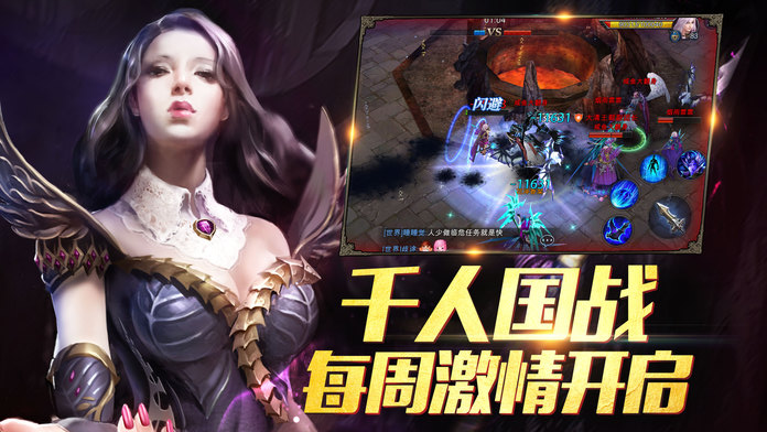3、千人国战,每周激情开启,每周开启千人国战,跨服全球匹配,挑战全世界高玩,谁说老外不会PK?热血国战关乎荣辱的激情对战!