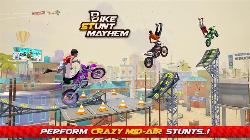 2.游戏关卡的难度会越来越高。玩家驾驶摩托车赛车,避开各种障碍,并表演酷炫的特技。