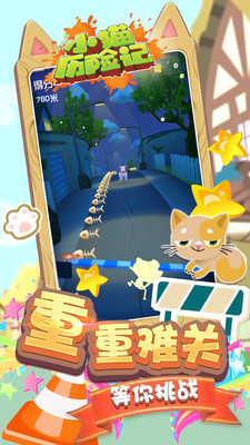 小猫历险记这款游戏绝对是可以萌化许多宅男的心哦这款游戏是一个非常典型的竞速类型游戏,利用各种道具追上逃跑的老鼠.传统跑酷游戏玩法,与画面想配合的还有音质很好的背景音乐,赛道上还会有各种道具,经典还原的游戏场景.感兴趣的朋友可以来本站下载.。