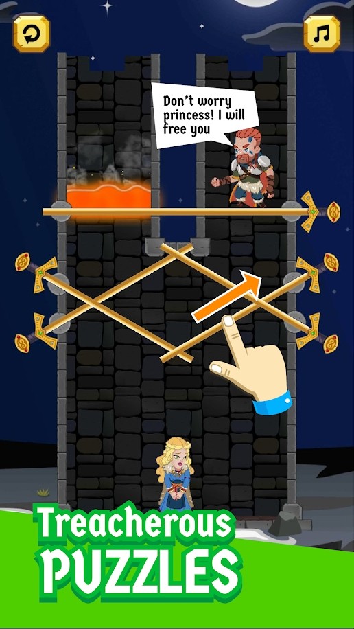 维京救援是冒险闯关游戏,玩家需要通过拉针的方式营救公主,玩家将前往地牢中破解重重机关,利用自己的智慧开始救援,遇到难题可以利用游戏道具帮助你通关,完成更多激情澎湃的自由闯关探索,在闯关的过程中你还能带走很多的财富。