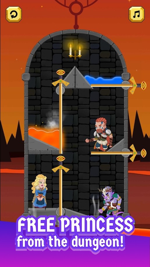 公主被怪物抓到了地牢当中,玩家需要操控英雄快速赶往,各种各样的关卡挑战非常考验玩家的智慧;