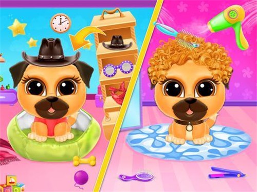 帕格护理小狗日托(Pug Care Puppy Pet Baby Dog Daycare)是一款Q版宠物养成游戏,你的任务就是照顾可爱的小狗日常生活,可以给他洗澡、整理发型、互动玩游戏等等,还要记得每天给它投喂食物哦,快来养成属于你的小狗吧。