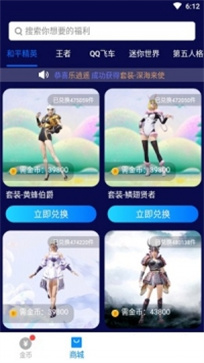 2. 这些积分可以在不同的游戏中兑换成皮肤,软件为您提供许多选定的皮肤道具,以便您更轻松地获得游戏皮肤。