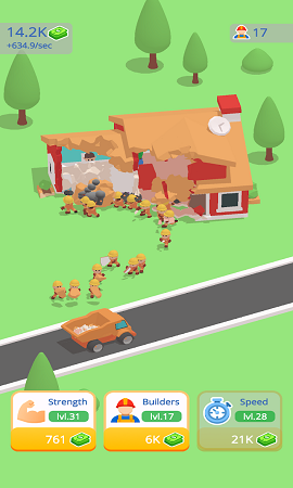 人群拆迁队游戏是一款采用了卡通风格的游戏画面进行打造的全新休闲玩法小游戏人群拆迁队游戏中采用简约小清新的动画画风,游戏中玩家要去拆除各种违建的房屋,含有各种机器可以去解锁使用,卡通的画风Q版的小人使得游戏乐趣无穷,喜欢的玩家快来下载人群拆迁队体验吧。
