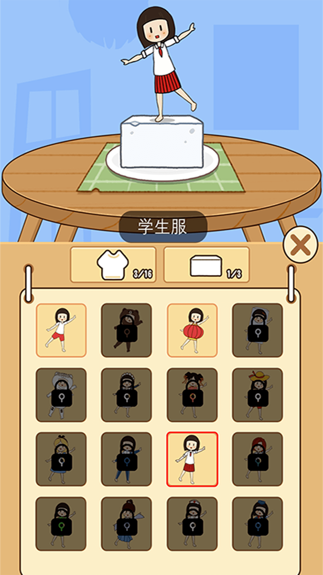 用收集的金币在豆腐店买入豆腐,获得新的女孩形象,达成成就解锁新的豆腐背景,体验收集的乐趣吧。