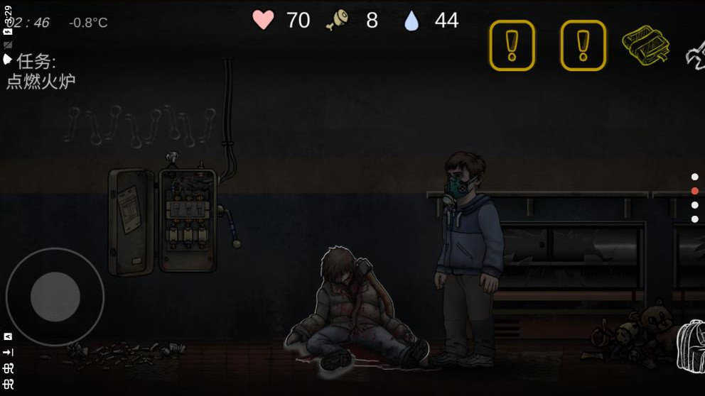 克服困难,玩家面对的危机不只是丧尸,还有解饿,温度,其他活人,用篝火来准备食物,避开动物,收集雨水,也可抢劫。