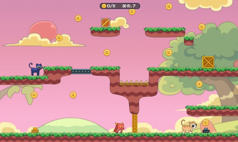 喵喵侠侣游戏推荐给喜欢小游戏的各位玩家朋友们这款游戏中玩家们将要控制猫咪进行冒险,游戏支持双人组队竞技,在此途中有着各种不同的危险和陷阱在等着他们,一胖一瘦他们一起闯荡江湖,比你队友更先到达重点。