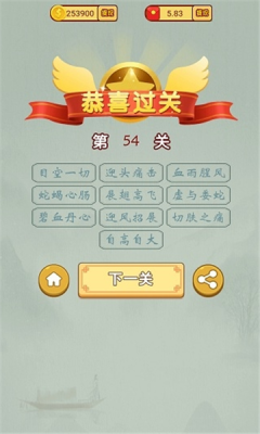2、游戏的氛围非常的轻松和舒适,玩家还可以在不断闯关的过程积累丰富的成语;