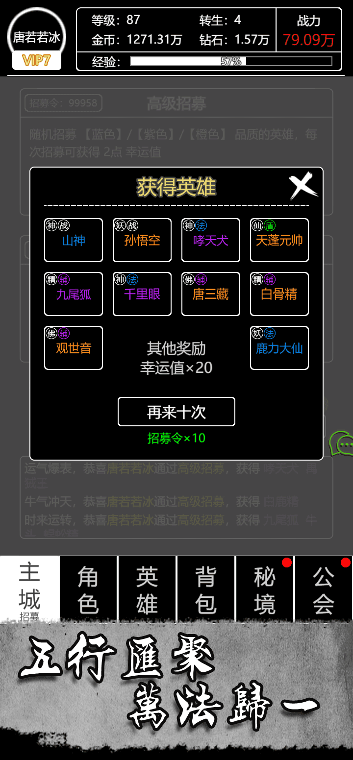3、文字西游戏中玩家们可以去进行对金币副本、妖丹副本、宝石副本、碎片副本的探索。