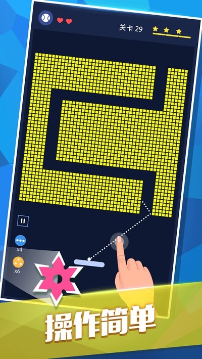 游戏只需要精确控制球的发射方向,消除屏幕上的所有积木即可。