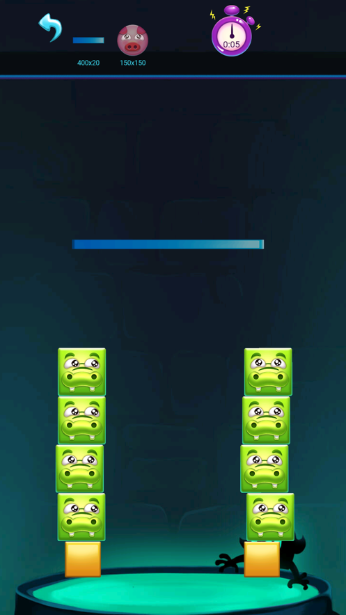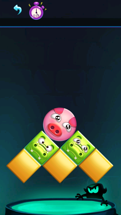 2、用可爱的动物们在重力的干扰下,卡住它们,并尝试到达标准线。在坚持几秒,你就可以获得胜利;