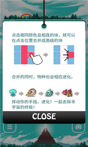 点击让同色的小块,让物种进行合体进化到下一个时代。