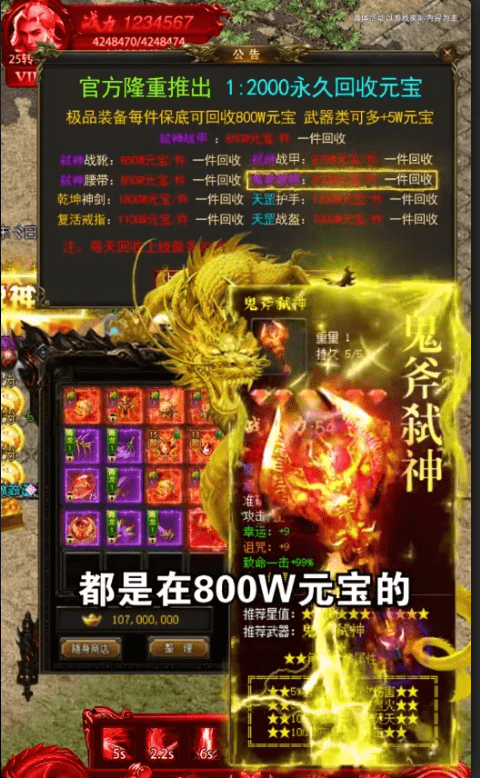 提供超高爆率玩法,装备秒回收,10分钟两百级,给你畅快体验,更有神装免费领