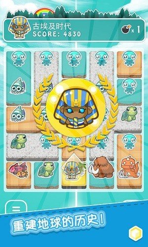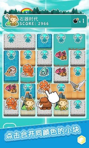 点击让同色的小块,让物种进行合体进化到下一个时代。