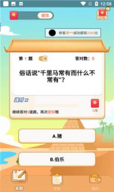 海量的题库随机生成,选择各种答题任务,赢得多多的奖励;