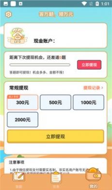 丰富的题目,超多新颖有趣的闯关玩法,积极答题领取现金奖励;