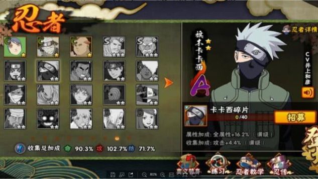 4、在里面我们可以遇到百名的忍者,还可以看到忍者的等级,帮助我们解锁更多的忍者在里面。