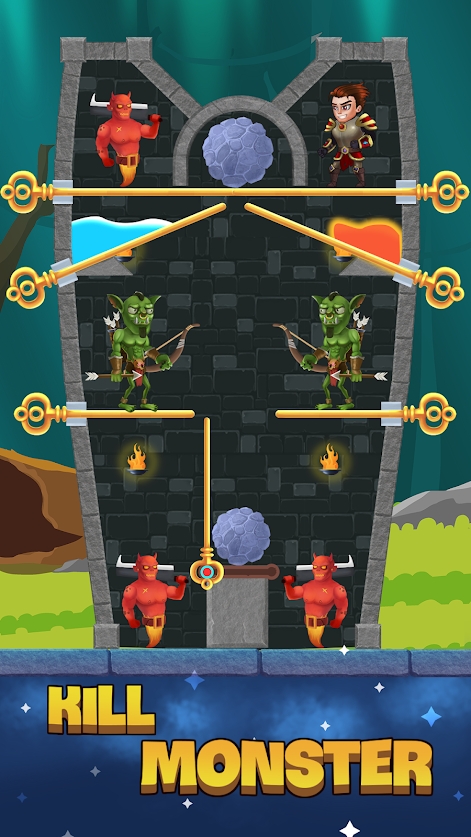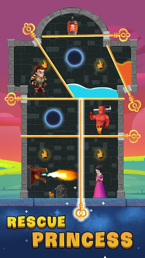 英雄别针拯救公主破解版是一款益智解谜闯关游戏。公主又双叒叕被恶龙给绑架了,潜入恶龙的城堡拯救被困的公主。经典的拉针玩法,通过拉针来利用场景内的各种道具消灭敌人,非常锻炼玩家的逻辑思考能力,喜欢的话就赶紧下载吧!
