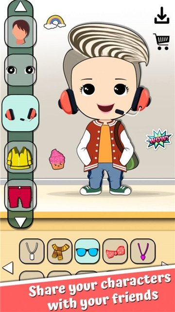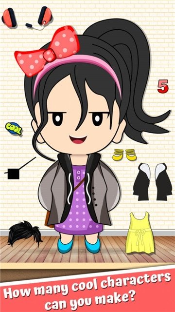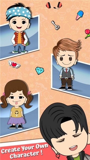 Q版卡通装扮游戏,在游戏中玩家可以创建自己独特的角色,角色服装,角色发型,脸型,肤色等,都是由玩家本人决定的,甚至角色的姿势,各种装饰品都是也是玩家在游戏中的选择。