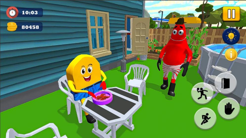 海绵家庭邻居4是一款恐怖逃生冒险类游戏,注意探索房子和藏身之处,便于逃跑时方便躲避,调查可疑的邻居是否和案件有关,寻找他家里的证据,就像个侦探一样。