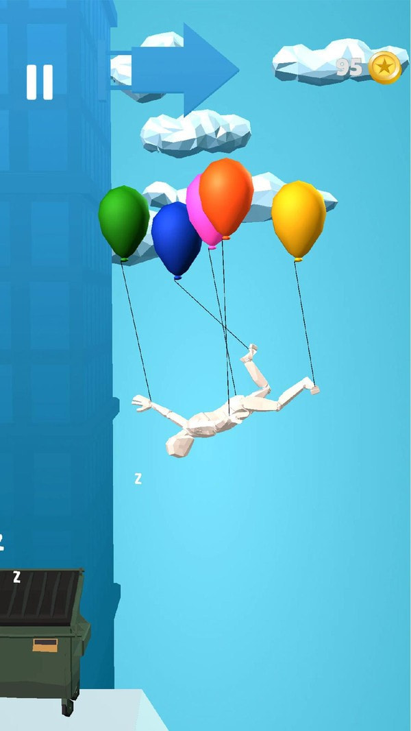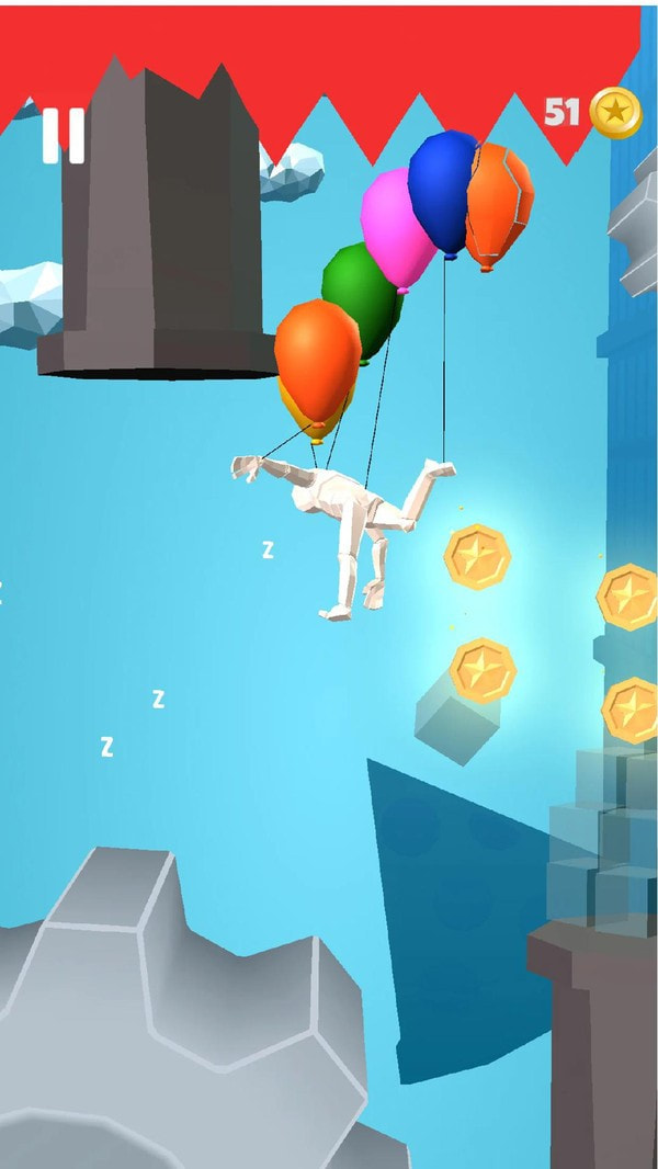 气球大师利用气球飞了起来,但他似乎睡着了。气球飞行大师这款游戏拥有超多趣味等待玩家探索,玩家只需轻按即可控制角色左右飞行。旁边的一切金币都是玩家财富的来源,可以利用它在商店中解锁更多的气球或者手机好看的服装。一定要躲避各种障碍物,当心别戳破你的气球了。数以百计的疯狂关卡等待玩家来挑战,来体验属于你的滋味吧!