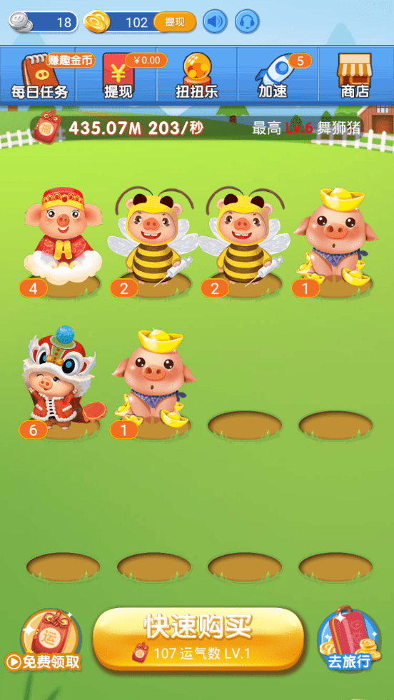 猪猪来了红包版是一款能够给玩家带来奇趣养殖体验的手机小游戏,拥有着趣味多多的经营玩法可以在游戏当中给大家带来,让你能够体验不一样的经营模式,还有着超多的福利等待着你去领取,完成任务就能够获得红包,能够给你带来大大的惊喜。