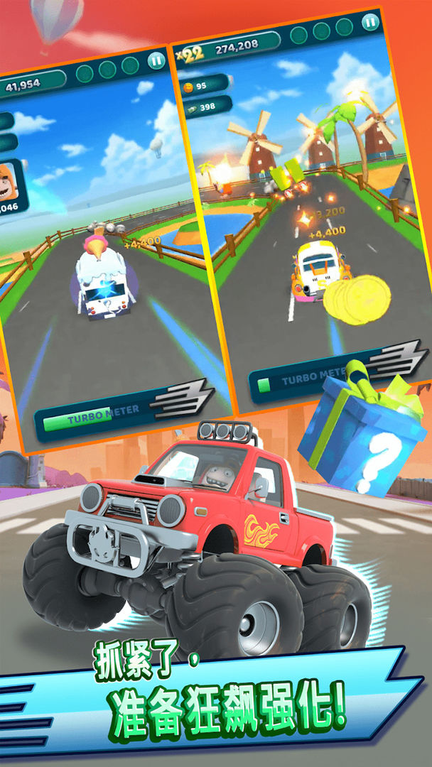 3.轻松滑动手指动,加入可爱的角色们,在无尽的冒险关卡中展开冲刺。