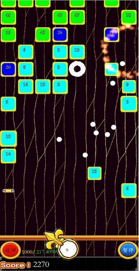 熟悉游戏,游戏界面会出现很多色彩斑斓的块,大多数块标有数字,代表多少次达到完全消除,玩家需要找到合适的角度来发射大理石,想办法让它达到更块,有一些特殊项目可以消除很多。