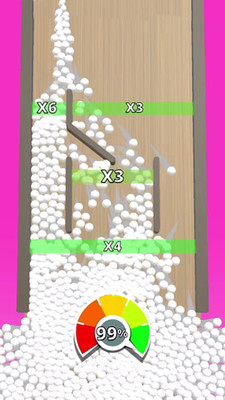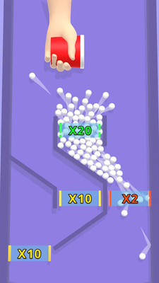 休闲益智游戏,在游戏中,你可以通过枪管发射小球,一开始只有几个球,玩家必须在这里进行定量分析,小球可以通过双倍道具和减法道具来增加或减少小球,您的最终目标是完成收集桶上标记的球数。