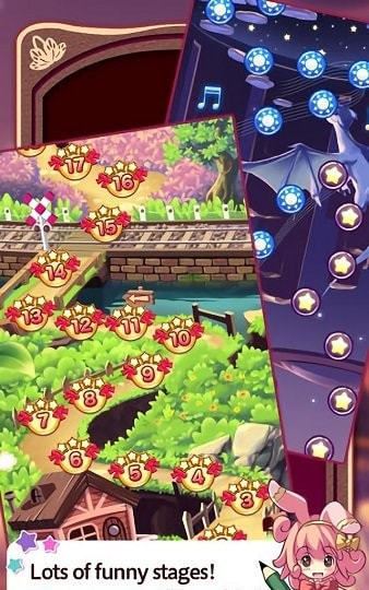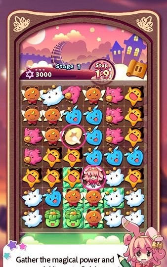 这款三消解谜游戏画面清新可爱,游戏主角是伟大魔女的后代“Cranberry”,和精灵波波姆一起为了收集魔力而踏上旅程。