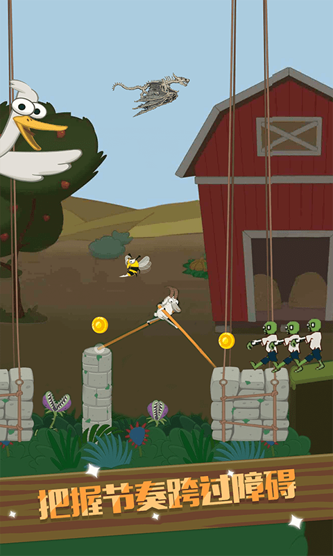 穿越僵尸迷城安卓版是一款非常有趣的闯关类游戏感兴趣的朋友就来下载吧,玩家需要踩着高跷去躲避僵尸对你的攻击,该款游戏考验了玩家的反应能力,游戏中还设置有不同的角色皮肤等待玩家进行解锁。