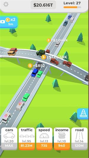 游戏的玩法非常的简单,没有任何的限制,你只需要对场景中进行放置各式各样的高速公路和交接点即可,这样你就可以更加轻松的管理更多的公路来获得更多的收益奖励你要仔细的观察周围的场景来合理的进行放置高速公路。