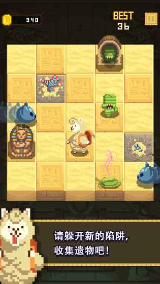 可以想到又是一款魔性上瘾游戏,和前作的两款一样都是像素风,游戏中我们要在5x5的格子上移动收集神庙里的物品,人物收集也是这类游戏的一个乐趣,成就解锁和金币解锁都可以,操作上按键比较方便也不会出错,这类游戏一般都是比分数的,玩法上都比较单一