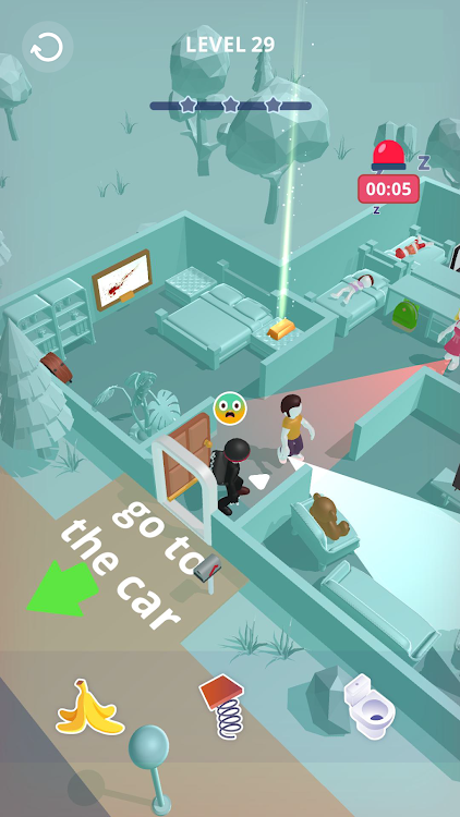打家劫舍再去买各种作案工具来帮助你去闯关,大量的游戏任务让你玩不停,而不是一个强盗,卡通趣味的风格让玩感受前所未有的有趣,成为一个超级神偷吧。
