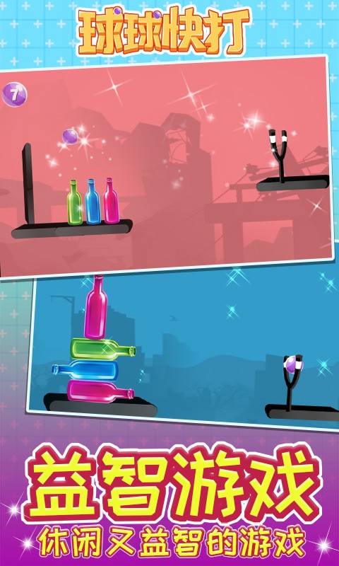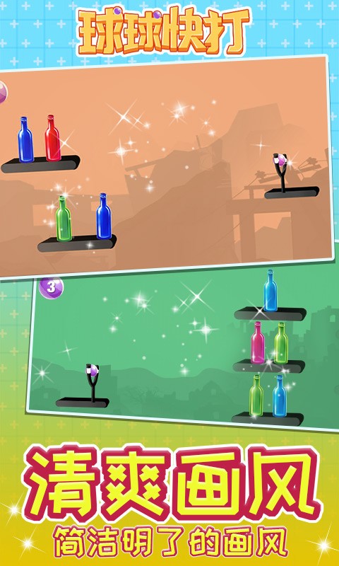 球球快打:你可以选择不同的关卡,利用你的球球击打一切,游戏中的操作还是挺容易的,各种各样的瓶子等待着你去击打,简约的游戏界面,轻松的游戏玩法,利用一定的弧度击倒各种各样的瓶子吧。
