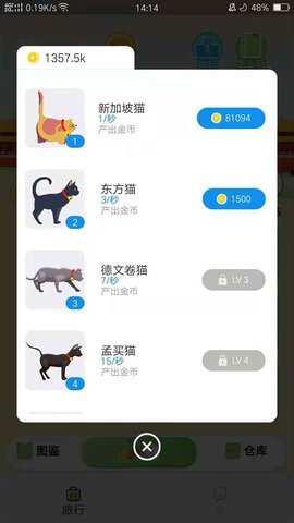 1.那些幸运猫的等级需要你一点一点的升级,这样你的收益就会翻倍。