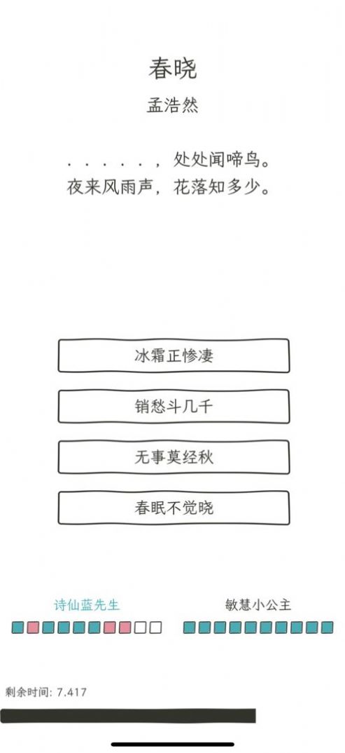2、你需要猜出空格里的汉字,把诗歌变成一个游戏,你可以边玩边学努力掌握更多古诗;