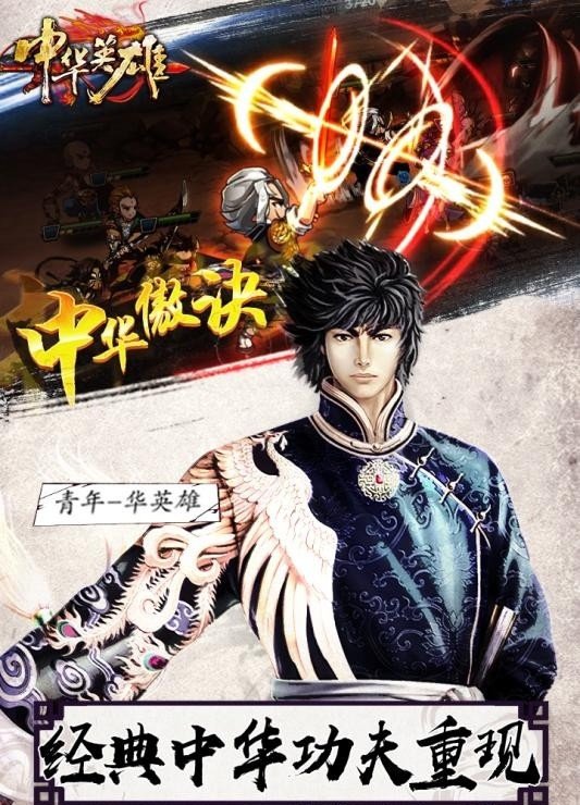 中华英雄重返十年经典手游中引入风云,中华英雄,大唐双龙传和神兵玄奇中的经典人物,把中华功夫融入游戏中,玩家不仅可以体验经典人物的招式,还能以中华功夫一决高下。游戏里融入了大量中华功夫的招式技能,让玩家体验前所未有的功夫狂潮!还原风云,中华英雄,大唐双龙传和神兵玄奇中的人物,让玩家体验一场功夫狂潮!
