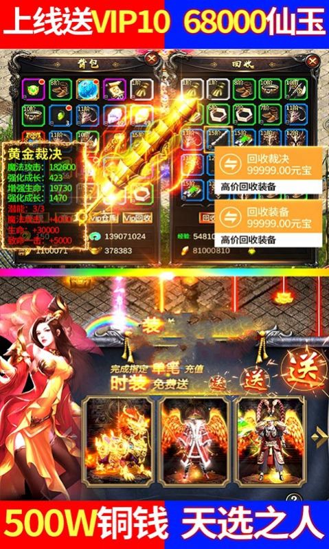2、各种不同版本,沉默版、游戏、散人服给玩家不同的极限传奇体验。