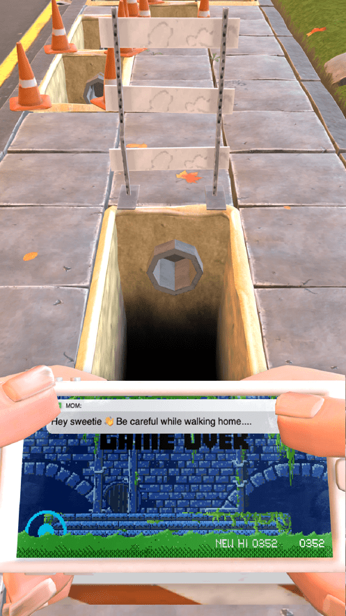 1、游戏很新颖,内容设计接近现实,很多人喜欢边走边玩手机,经常看不到前面的杆,下水道等等;