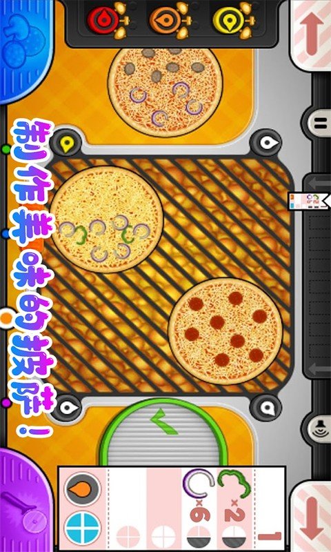 在老爹小镇披萨达人的披萨店上,烤上披萨!你将需要在披萨店的每个区域之间进行多任务操作,前往订购站,观察等候在大厅的顾客。切换到配料站,为每个披萨饼添加各种配料。去烤箱把披萨饼放在烤箱里烤,直到它们烤得恰到好处。跳到切割站把披萨饼切成完美的薄片。每一站都是一次亲身体验,您需要在这里拖动、滑动和轻触披萨饼制作过程。水果披萨、榴莲披萨、培根披萨等等任您挑选!