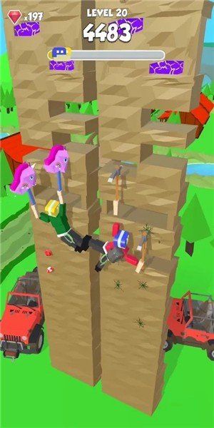 1、将登山镐努力敲入墙壁之中才能够让本身不断往上面哦,两只手互相配合才能够快速往上攀爬